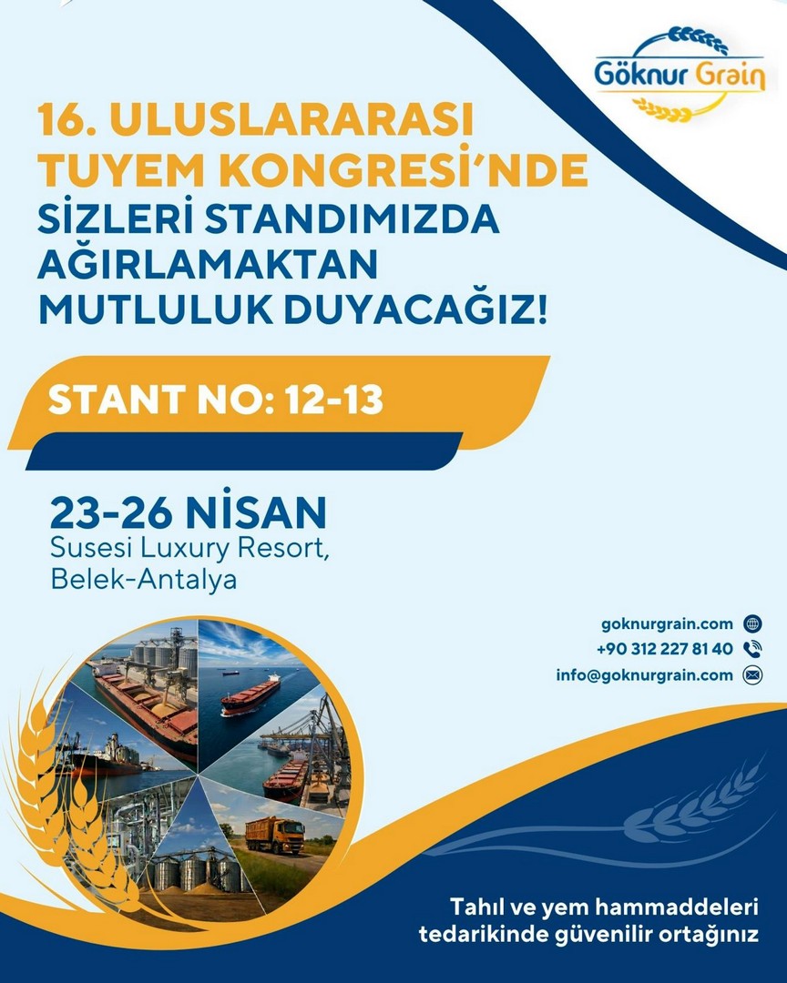 Göknur Grain olarak, yem sektörünün en prestijli organizasyonları arasında yer alan ve Türkiye Yem Sanayicileri Birliği tarafından bu yıl 16’ncısı düzenlenen TUYEM Türkiye Yem Kongresi’ne katılım sağlamaktan memnuniyet duyduk.